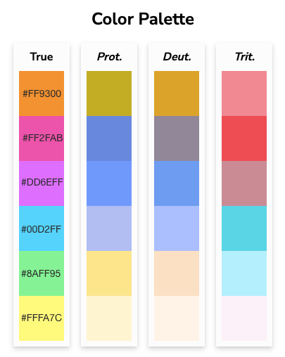 Text colors and contrast were carefully chosen to provide access to users who are colorblind